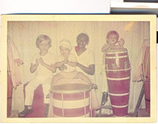 Sim, meus caros, eu estou nessa foto. Sou o maiorzinho. Apareço, cabeleira a Bufalo Bill, batendo palmas ao lado de Dona Mundica, do meu irmão Alexandre, tocando tambor, e do meu irmão Antônio Claudio, que acabara de fazer seu amaci de consagração aos orixás e encantados.