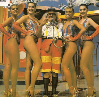 Chacrinha foi também compositor de marchinhas carnavalescas politicamente incorretíssimas, em parceria com João Roberto Kelly. São da dupla pérolas como Maria Sapatão, Eu tô cheio de mulher (com a inacreditável interpretação do ator Mário Gomes, na época conhecido como Dino Cenoura – alguém lembra por que? ) e Bota a camisinha. No fundo, era isso mesmo que Chacrinha fazia: carnaval o ano inteiro. Fantasiado de abacaxi, noiva, bombeiro, borboleta, pirata, índio e o escambau, o menino de Surubim, velho palhaço, esculhambou tudo. O que acho dele? O próprio definiu perfeitamente seu papel na comunicação brasileira com uma frase emblemática: Eu vim para confundir, e não para explicar.