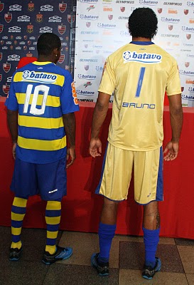 A surpresa foi a belíssima camisa de goleiro, na cor dourada, que acompanhará este terceiro uniforme. A Olympikus havia mantido este em segredo e, com os detalhes em azul, ficou belíssimo. Espero que seja colocado à venda também.
