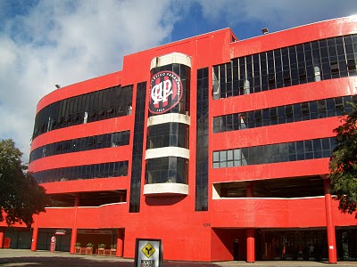 Fachada da Arena da Baixada, tema do próximo post sobre a cidade;