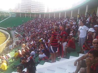 Como a única organizada representada era a Urubuzada – pelo menos com faixa – percebia-se um comportamente bastante diferente do verificado no Rio. Músicas que eu não ouço há muito tempo lá eram cantadas. Era algo mais espontâneo e, tirando-se a irritação com Val Baiano, mais compreensiva.