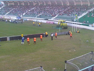 Diria sem medo de errar que é o pior estádio de futebol que eu já vi na vida. O estádio da Ponte Preta, onde estive na terça feira, é bem melhor e mais conservado.