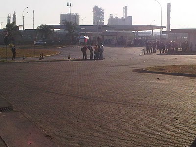 No último dia houve uma paralisação (abaixo) comandada pelo sindicato paulista, ressonância de movimento nacional, e ao contrário do que ocorre em sedes administrativas, ninguém entra mesmo. A produção é mantida pelo turno que “dobra”, mas quem está fora não entra. É época de dissídio, mas não me pareceu muito inteligente uma paralisação de oito horas em plena campanha eleitoral e com a imprensa em cima da empresa.