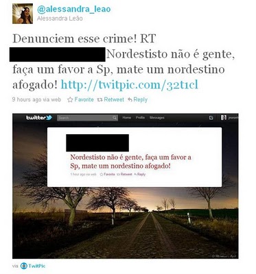 A imagem acima é um exemplo claro do que digo: eleitores de Serra, revoltados no Twitter, colocando a “culpa” pela derrota do candidato tucano nesta “gentalha” que vive no Nordeste, “bando de vagabundos que só recebem Bolsa Família”.