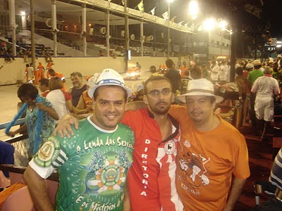 “Aloísio Villar, 34 anos, carioca, compositor e rubro negro (na foto acima, à direita, comigo ao centro e o colunista Fabrício Gomes à esquerda, no Grupo B de 2009). Ganhador dos dois principais prêmios dedicados ao samba enredo do carnaval carioca, o Estandarte de Ouro de Melhor Samba do Grupo de Acesso em 2001 e o Prêmio Sambanet em 2009 – ambos pelo Boi da Ilha do Governador.