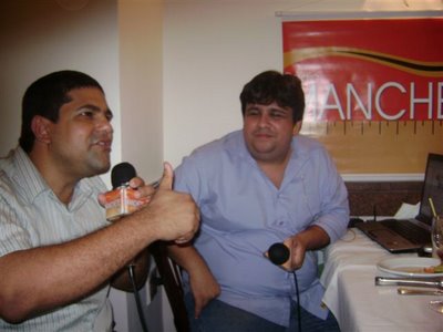 João Guilherme (na foto com o também narrador Daniel Pereira), carioca, narrador esportivo do Sportv. Criador de bordões como o “Que Desagradável!” que “brinda” aqueles que performam uma jogada bisonha em nossos campos – e nos internacionais também. Seguidor no Twitter, e de lá entabulamos uma conversa virtual – e ele aturou algumas reclamações minhas sobre escalas nas transmissões…