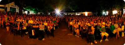 Como se passava numa praça, a primeira exibição de A DAMA DO PEIXOTO, de Douglas Soares e Allan Ribeiro, ocorreu na praça principal da cidade de Tiradentes (foto acima). Associação curiosa mas que talvez tenha tirado a possibilidade de o curta ter sido melhor apreciado entre o “público especializado” que comparecia em peso no cine-tenda para assistir às sessões da Mostra Foco e do Panorama. Independentemente de onde tenha sido exibido, no entanto, as qualidades do curta, um dos mais interessantes de toda a programação de curtas da Mostra, são evidentes.