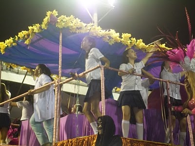 A roupa da porta-bandeira tava pesada também, ela deve dificuldade na apresentação, pois é magrinha e não é muito alta.