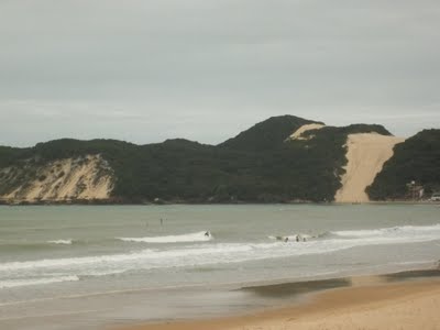 Acima pode se ver o “Morro do Careca”, local turístico de Ponta Negra, mas infelizmente interditado a visitação, segundo soube, por causa de sua utilização inadequada.