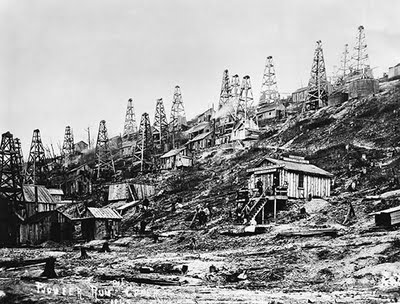 O início da narrativa mostra as primeiras descobertas no Texas, Estados Unidos, e sua utilização como querosene para iluminação pública e nas casas – possibilitando que não se caçassem mais baleias para obtenção do óleo então usado na iluminação.