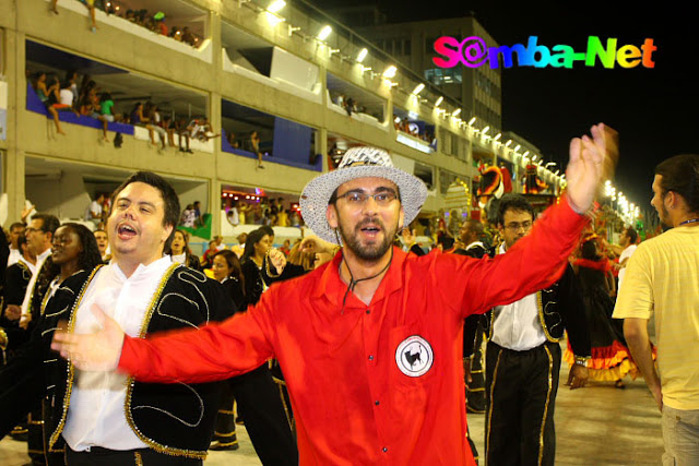 Escola com a qual eu também tenho uma história toda especial: é a segunda onde mais desfilei – cinco anos consecutivos, de 2006 a 2010 – e onde pela primeira vez fiz parte de uma diretoria – fui Diretor de Planejamento e Orçamento no biênio 2008/09, na gestão do Presidente Cadu. A agremiação se ressente muito da perda de sua quadra e de seu barracão, consecutivamente, ocorrida antes do carnaval de 2010. Abaixo pode-se ver o colunista comigo durante o desfile de 2010.
