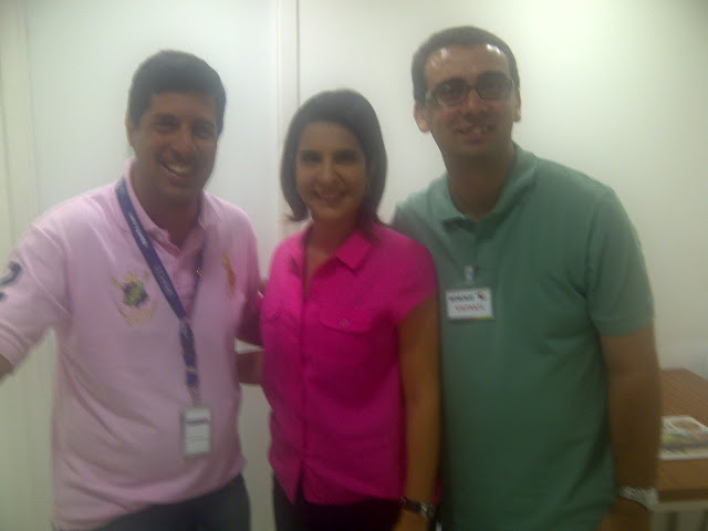 No intervalo (três minutos) ainda deu tempo de tirar uma foto com os apresentadores do programa. Aliás, o curioso é que eles não utilizam roupas pessoais, e sim do figurino do canal – Vanessa Riche, por exemplo, estava com um vestido de cor escura antes de ancorar o “Tá na Área”.
