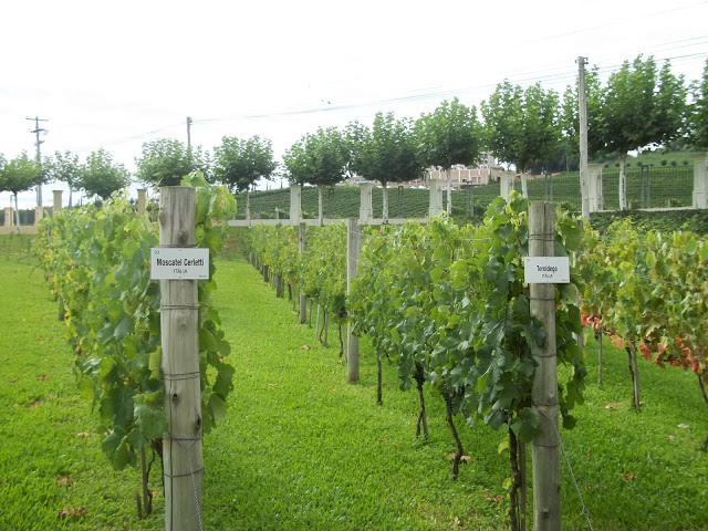 Já ao chegar percebe-se a divisão das parreiras de acordo com as uvas e suas especificidades. Apesar do enólogo que nos acompanhou ter dito que as uvas eram extremamente azedas, tive a curiosidade de provar duas ou três e não achei tão ácidas.