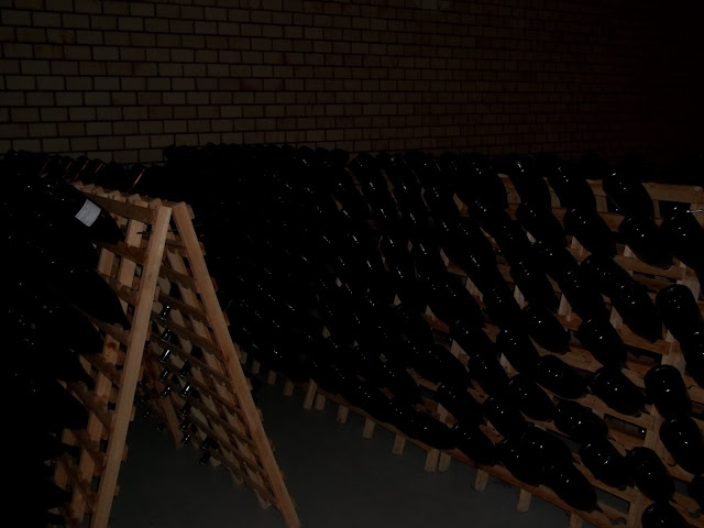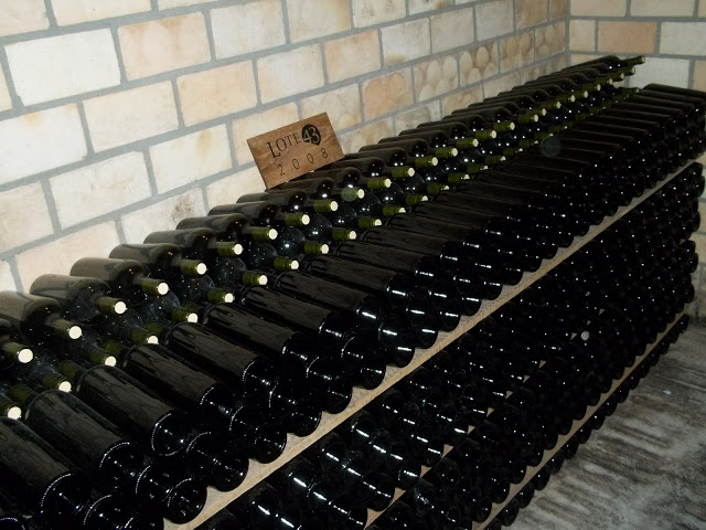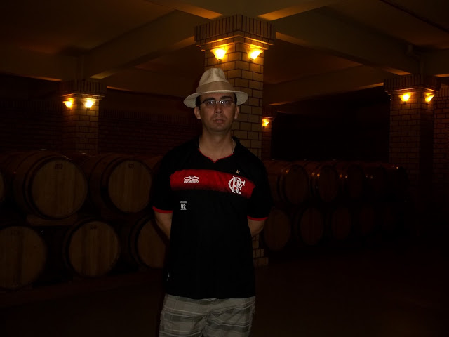 Após a passagem pelos fermentadores, entramos na cave de maturação (foto que abre o post). São usados barris de carvalho franceses ou americanos, utilizando-se a seguinte regra: vinhos mais nobres utilizam o primeiro ano dos barris, vinhos médios o segundo e terceiro ano e mais populares o quarto ano.