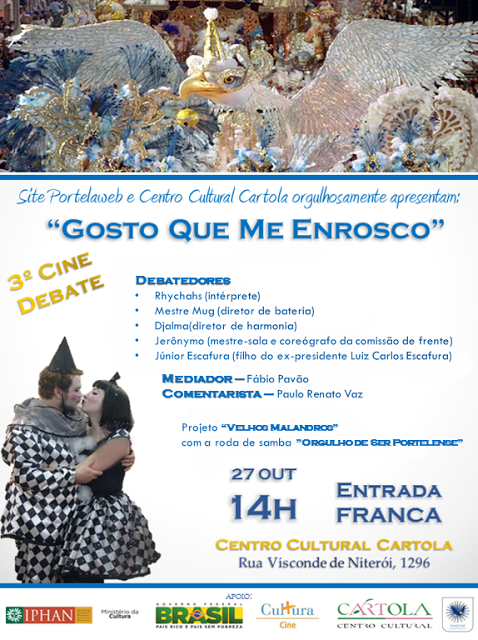 No Cine Debate, que vai para sua terceira edição, o tema é o enredo da Portela de 1995, “Gosto Que Me Enrosco”, considerado por muitos críticos uma aula de desfile de escola de samba. Personagens do histórico desfile da Águia estarão debatendo o carnaval que levou a escola ao vice-campeonato daquele ano, com um samba antológico.