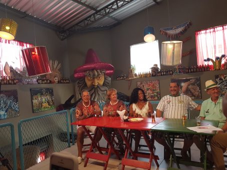 A turma do Berço do Samba foi formada por Estácio e Império da Tijuca (fotos e vídeos deste artigo). Uma história de amor nascida em vermelho e branco e uniu uma passista (hoje coordenadora das baianas de São Carlos) e um folião de ala fez lembrar o velho e lindo samba de Martinho da Vila (“Pra tudo se acabar na quarta-feira”). A memória viva da Formiga com seu Tiãozinho e o presidente Tê, figura impagável. Abrilhantando o encontro, a ilustre presença de Selminha e seu sorriso campeão em 1992.