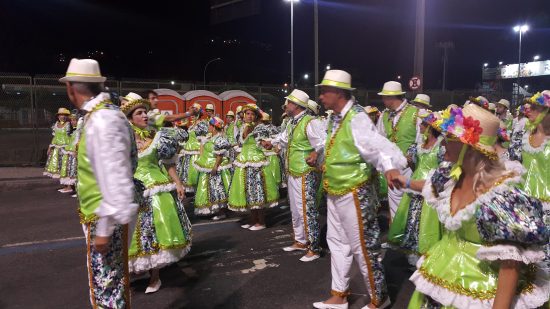 Aliás, para o leitor que não tem o hábito, uma escola por noite é o suficiente. No Grupo de Acesso A de 2004 cometi a loucura de desfilar em quatro escolas na mesma noite. Resultado: no Tuiuti, que era a última, passei me arrastando – e com o joelho estourado… Aliás, depois que operei os dois joelhos em 2015 tenho me limitado a duas escolas por ano.