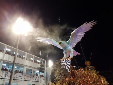 Obs: alias esse desfile ao amanhecer gerou fotos maravilhosas da Águia despontando na avenida em cima do Abre-alas. O Migão tirou algumas, que ilustram este texto e isso mostra o quanto o carnaval precisa de um desfile ao amanhecer.