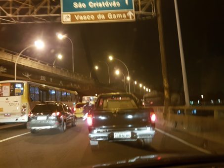 A opção pela Brasil ou pela Linha Vermelha neste momento é indiferente: a primeira convive com obras e a segunda, por conta disso, recebeu um fluxo extra de carros. A foto acima, tirada na segunda feira por volta de 18h50, dá um bom exemplo.