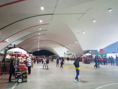 Dentro do estádio, pelo menos no setor Oeste – onde estive em todas as partidas – o atendimento ao público funcionou de forma adequada. Os food trucks atenderam bem ao público, e a estrutura de ambulantes nas cadeiras também funcionou a contento em quase todos os jogos. A ideia do copo personalizado para cada jogo também foi bela sacada.