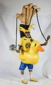 Também promete chamar a atenção é a ala “Manifestoches”, na qual os componentes vestirão uma fantasia em que uma mão enorme os manipula como fantoches, com direito a panelas, camisa da Seleção e um pato no meio. Sintomático, não?