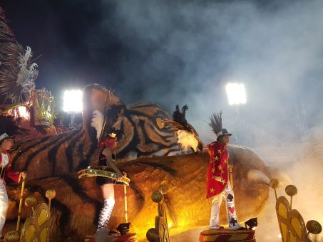 Uma entrada imponente, com um leão iluminado – e melhor que o da Estácio de Sá. Bateria bem e o lindo samba funcionou otimamente para o desfile. Nível plástico caiu bastante nos dois últimos setores, especialmente no último.