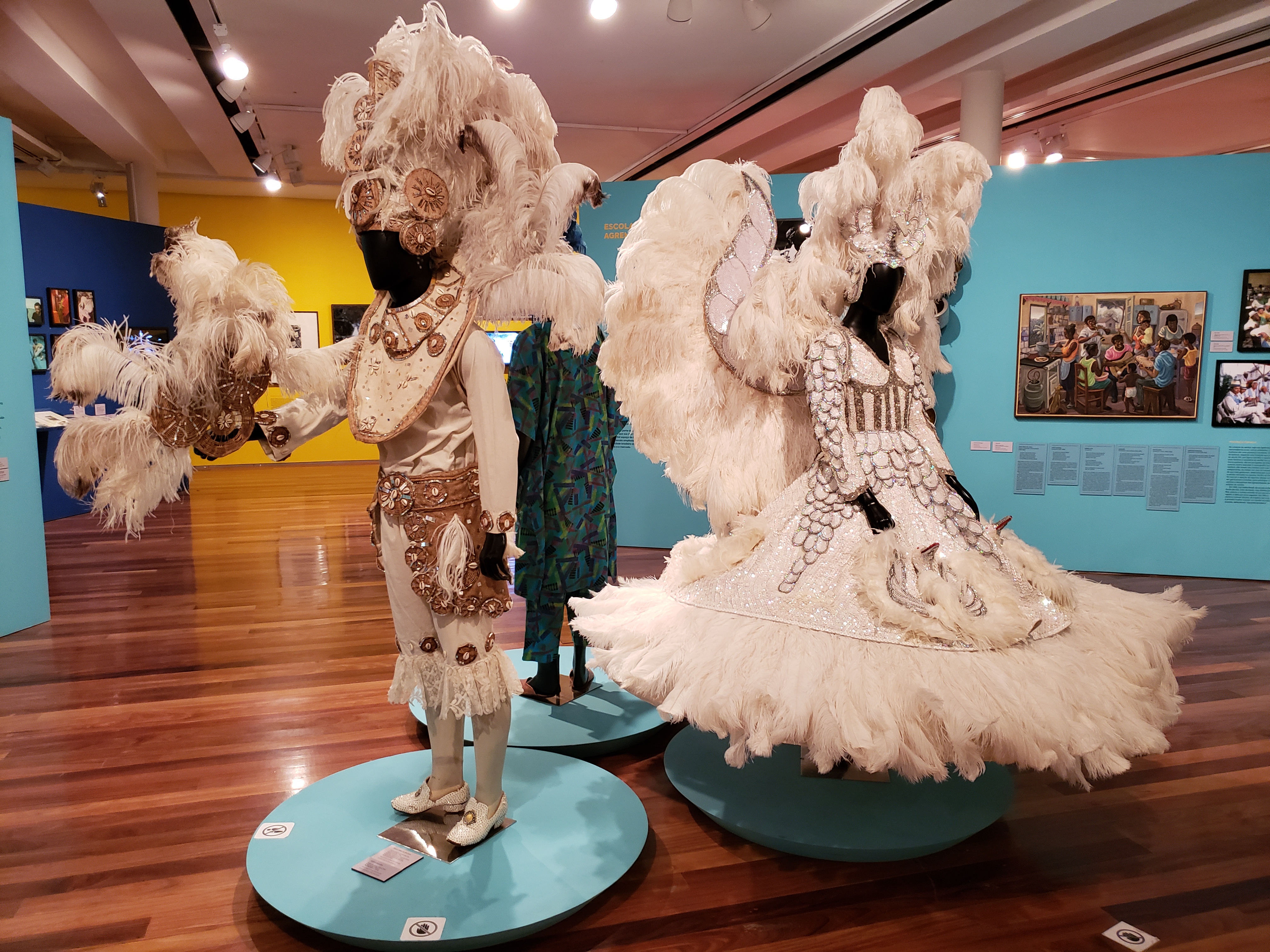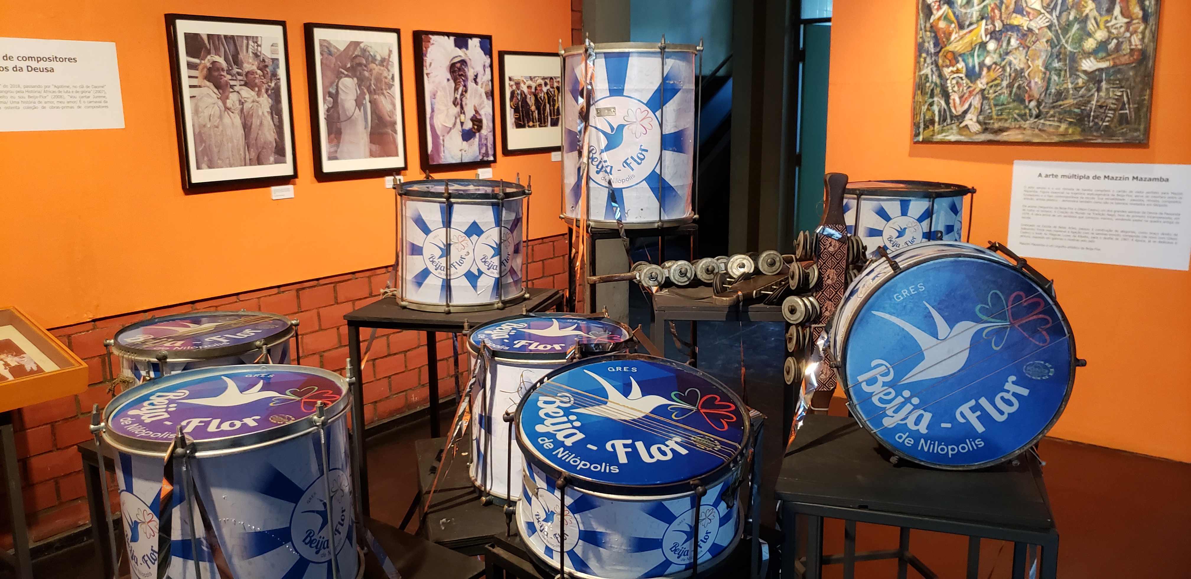 Adicionalmente, a exposição sobre o samba merece uma visita atenta. Entre outros, temos preciosidades como as fantasias da bateria e do casal de “Kizomba”, a meu juízo o maior desfile da história da Sapucaí (acima).