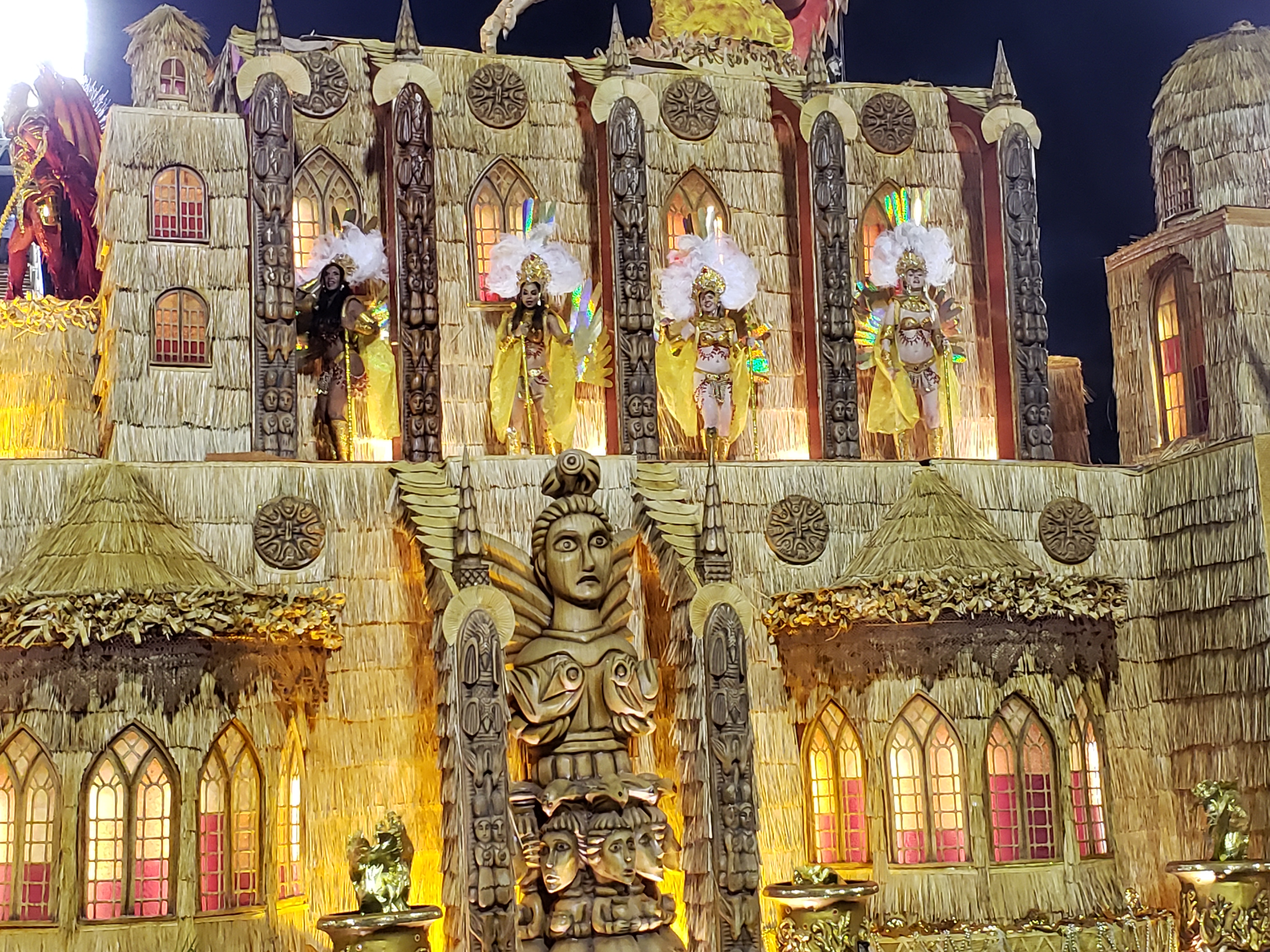Quanto ao samba-enredo, o problema é achar que 9.8 é uma nota para um samba com problemas. Não deveria ser. 9.8 deveria ser uma nota para o samba do Salgueiro, por exemplo: muito bom, contagiante, mas repete “Obá” cinco vezes. Ok, é um samba para Xangô, mas será que não poderíamos ter mais originalidade? Além disso, numa passada do samba (contando a duplicidade nos refrões), a palavra “Xangô” aparece oito vezes. Mais uma vez: não falta originalidade? Imagine um samba sobre a Alemanha, por exemplo, que repetisse Alemanha por quatro vezes e país oito vezes? Seria canetado sem dó. Sambas afro precisam ser mais bem trabalhado na estrutura das letras para evitar esse tipo de coisa.