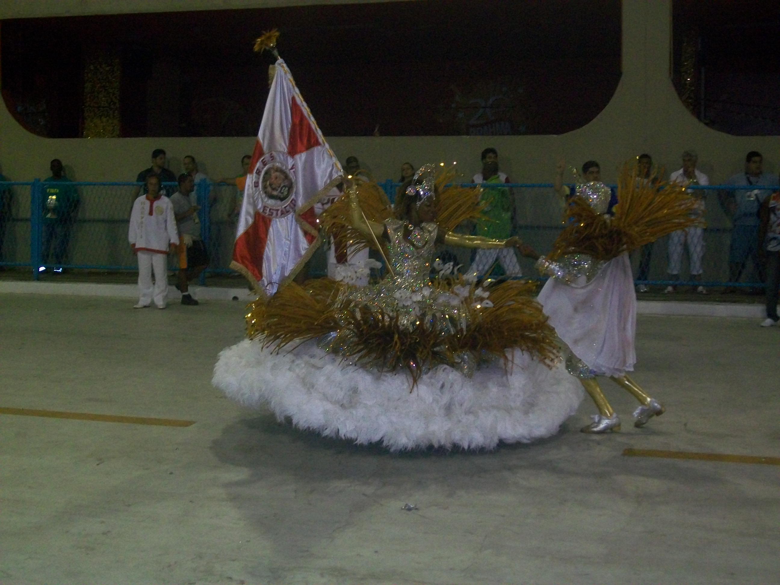 Ainda falando da dupla, o uso de materiais e formatos alternativos também é relativamente recente, pois que o quesito costuma recair em certo tradicionalismo. De passagem, lembro de alguns trajes modernos que seriam impensáveis em outrora: as saias em pincéis de espuma que Paulo Barros usou em 2003 no desfile sobre Portinari na Tuiuti e da estrutura que montava-e-desmontava, quando o carnavalesco assinou o desfile da Estácio em 2006. Outro figurino que gosto e acho bem ousado é o da 1ª PB da Inocentes do desfile deste ano.