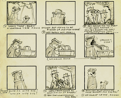No ‘storyboard’ é definida a trama, os personagens, cenários e tudo mais que fará parte do jogo, incluindo efeitos e trilha sonora. No ‘storyboard’ são definidos e detalhados cada personagem do jogo e como o jogador irá interagir (jogar) com estes elementos. O nascimento de um jogo de sucesso passa sempre por um ‘storyboard’ bem feito. O processo de criação de storyboards foi criado por Walt Disney na década de 30; na foto do alto do post podemos ver o storyboard de uma animação do consagrado desenhista americano.