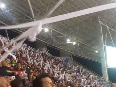 Acabei em um bom lugar, perto da grade e dentro de uma das organizadas do clube, a Urubuzada. Sem problema algum, ao contrário, foi legal ouvir e cantar aquelas músicas que cresci entoando nos estádios.