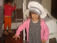 Fotos 3 e 4: eu e a Maria Clara “fantasiados” de Mestre Cuca