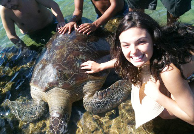 Entretanto, o tal site de celebridades destaca mais a atriz em questão que o imprescindível projeto de preservação das tartarugas marinhas.