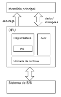· A existência de 3 subsistemas: a CPU (Central Process Unit, ou Unidade Central de Processamento), a Memória Principal e o Sistema de Entrada e Saída (E/S ou I/O, de Input e Output).
