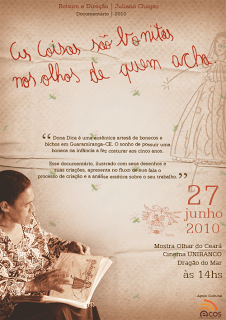 As sessões dos filmes locais, como a Mostra Olhar do Ceará, possui momentos como a exibição do curta As Coisas São Bonitas Nos Olhos De Quem Acha, de Juliana Chagas. Trata-se de um documentário sobre Dona Dica, que faz bonecas de pano, costuradas à mão, em Guaramiranga. O curta registra de maneira singela essa humilde e simpática senhora, que faz bonecas aparentemente feias mas que seduzem as pessoas pela simplicidade de sua beleza. O curta é singelo, embora muito precário, seja tecnicamente seja em sua proposta estética, baseada quase que exclusivamente em entrevistas que meramente valorizam a simpatia da entrevistada mas que não avança em nada além disso. Mas a questão aqui não é essa: a exibição de As Coisas São Bonitas foi sem dúvida o maior momento do Olhar do Ceará, por algo que vai além do curta, além de suas possíveis qualidades estéticas: a presença física de Dona Dica, que ao final da sessão recebeu aplausos e abraços carinhosos, e, visivelmente emocionada, retribuiu as gentilezas com um sorriso. Momento lúdico, de rara beleza, em que aqui a análise se curva à possibilidade de que um filme promova um abraço carinhoso, uma pequena homenagem a uma mulher simples que cultiva a vida e a fabricação de suas bonecas. Nenhum outro momento de cinema nessa mostra teve tamanha força e vitalidade. Ainda que esse momento escape diretamente à força do filme em si, mas é claro que surge em decorrência dele, a partir dele. Esse simples curta possibilitou um encontro, que despontou ali, naquele cinema, naquela sessão, num contato com o público. É belo por isso. Acredito que é pela possibilidade desses encontros que essa mostra precisa ser defendida.”
