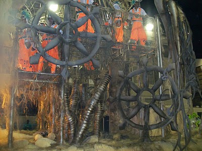 A cidade se desenvolveu, tornando-se uma megalópole marinha. A tecnologia, o transporte… toda a modernidade trazia mais vantagens para a vida ali. A vida noturna também era bastante agitada. Como toda cidade, Aquaticópolis tinha problemas de desigualdade, miséria, pirataria… Mas todos esses problemas eram esquecidos numa única época do ano. Carnaval! O rei dos mares ordenava e os súditos iam festejar!!!