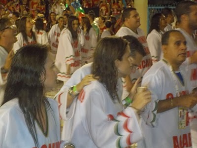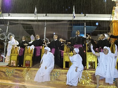 Embaixo de chuva, os “religiosos” no desfile da campeã Renascer de Jacarepaguá.