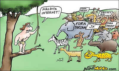 Como a charge ironiza, o meio virtual também foi rastilho para as manifestações que sacudiram diversos países nos últimos meses. Apesar de sua importância ter sido em minha opinião claramente superestimada, não se pode tirar a importância da convocação via redes sociais como “catalisador” dos protestos, bem sucedidos em alguns países, nem tanto em outros.