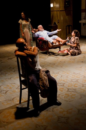 Eles colocaram uma certa leveza no texto, que faz você ficar arrasada quando acaba. A vontade é que a história continue. A cenografia de Márcio Medina (que também é responsável pelo figurino) também me chamou muita atenção. Há umas colunas de madeira móveis, que definem os cômodos da casa, muito interessantes.