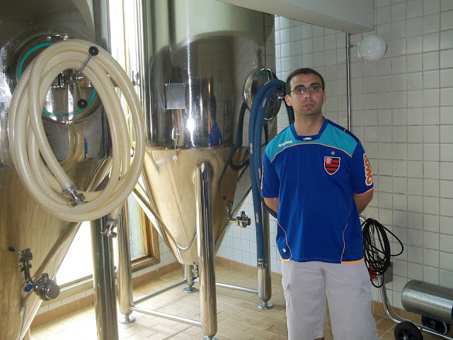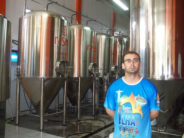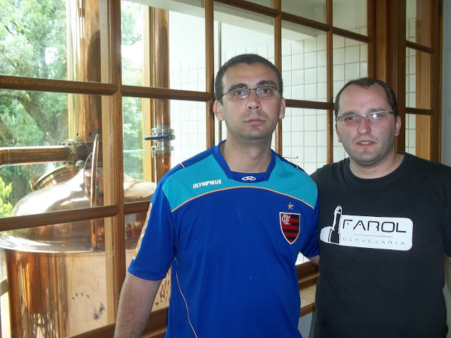 O Mateus (abaixo comigo) foi extremamente atencioso na visita, e ainda levei duas embalagens de cerâmica de um litro para o hotel. As embalagens – muito úteis para se servir cerveja – chegaram cheias ao quarto, mas voltaram vazias para o Rio.