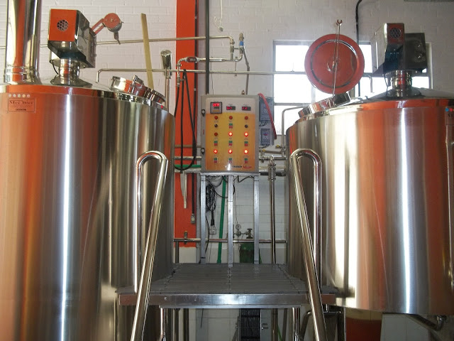 Foi a primeira vez, acreditem, que visitei uma fábrica de cerveja. Do bar pode-se ver a sala de brassagem (na foto que abre o post) e os tanques de fermentação (foto 2). Cada chope leva mais de um tipo de malte em sua composição de forma a atender o sabor e a cor determinadas pela receita.