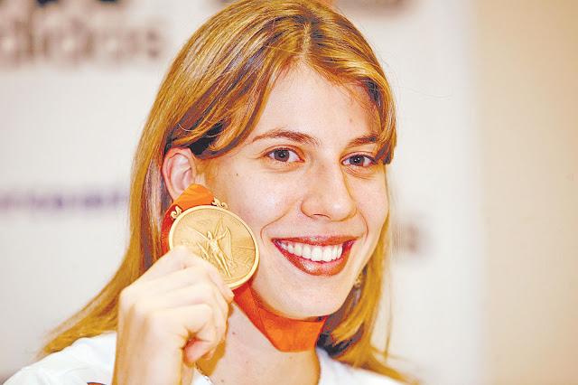 Mesmo que ela não consiga essa medalha, ela merece nossos aplausos de pé por tudo que já fez pelo pentatlo brasileiro. Nunca me esquecerei de como fiquei feliz com o ouro dela no Pan aqui no Rio em 2007. Das 141 medalhas que ganhamos, essa foi de longe a que mais mexeu com minhas emoções.
