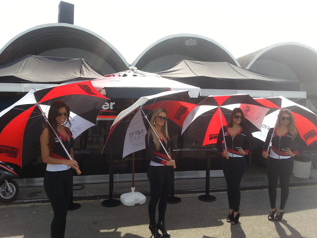 Outra coisa é que se aproveita o sábado, dia de menor movimento, para se fazer ensaios fotográficos. Tanto envolvendo “grid girls” (abaixo) quanto dentro dos boxes durante a tomada de tempos oficial. Acompanhei a classificação nos boxes da equipe RCM – de Thiago Camilo e Lico Kaesemodel – e toda a movimentação de chefe de equipes, mecânicos, pilotos e carros é registrada.