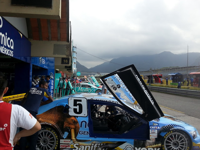 Estive acompanhando todos os treinos do dia de sábado, graças a uma credencial que me permitiu circular pela área de boxes e na beira da pista. Depois no dia seguinte, na corrida, estive na área dos boxes e depois acompanhei a corrida do camarote de um dos patrocinadores, com outra credencial.