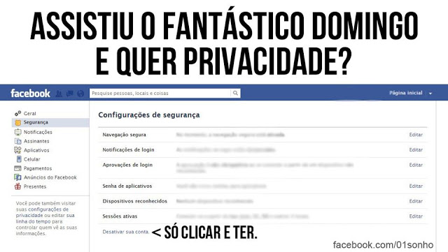 Nesta última semana circulou pelo Facebook um texto sobre uma matéria do Fantástico que alertava para “Os perigos do Facebook” (aqui também cabe a voz do Cid Moreira) e “ensinava” aos telespectadores como “proteger” os seus respectivos perfis para que outras pessoas não visualizassem as suas atualizações e interações.