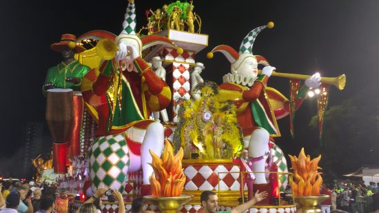 Análise – A escola veio com um início fabuloso e o nível das alegorias foi alto, lembrando que a escola gabaritou neste quesito ano passado; já em fantasias a escola oscilou um pouco, mas em geral veio bem.