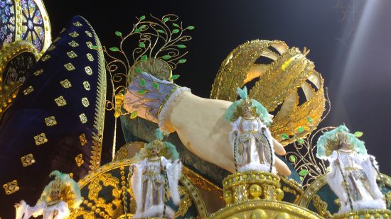 No abre alas a escola ousou, ao separar a primeira da segunda parte por uma corda e nesse espaço encaixar componentes no chão. Já a terceira alegoria emocionou ao mostrar representações teatrais dos milagres da santa e o último carro trouxe o santuário de aparecida ao Anhembi todo em branco, com Nossa Senhora em uma grande escultura na cor prata. Ao final do desfile, surgiram alguns gritos de “é campeã” nas arquibancadas.