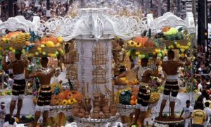 Outra alegoria que mereceu aplausos foi a que mostrou um grande mercado (foto ao lado) no setor dedicado à culinária. Mas talvez o que tenha causado o melhor efeito foi o uso de dezenas de tripés muito bem realizados, sobretudo no momento de abordar o candomblé, e que proporcionaram um lindo conjunto sem comprometer a evolução.