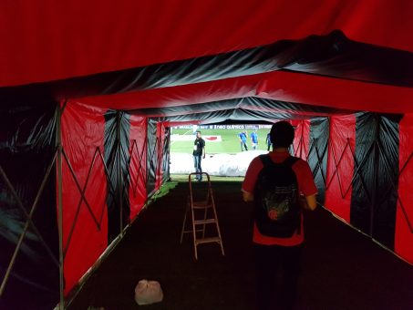 Cheguei com alguma antecedência – fora pedido de que estivéssemos duas horas antes do início da partida – e já estava o pessoal do clube nos esperando. Algumas regras adicionais foram colocadas ali, como por exemplo não pedir fotos aos jogadores no momento da chegada ao campo – para não atrapalhar a concentração – e evitar pisar no gramado.