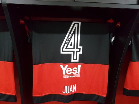 Cada jogador tem sua “baia” com o material de jogo. Camisas (primeiro e segundo tempo), calção, roupa térmica, chuteiras (três ou quatro pares para cada jogador), chinelos e um par de tênis. Por algum motivo que não saberia explicar, na baia do jogador Pará havia uma camisa do Grêmio personalizada, ele que é ex-jogador da equipe.